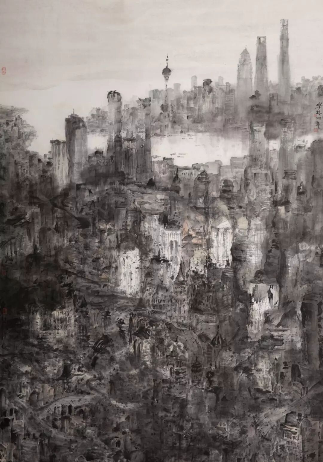 樊枫从8月份开始创作,历时一月就完成了。之所以创作得如此顺利是基于樊枫几十年来对都市水墨的持续创作和探索。